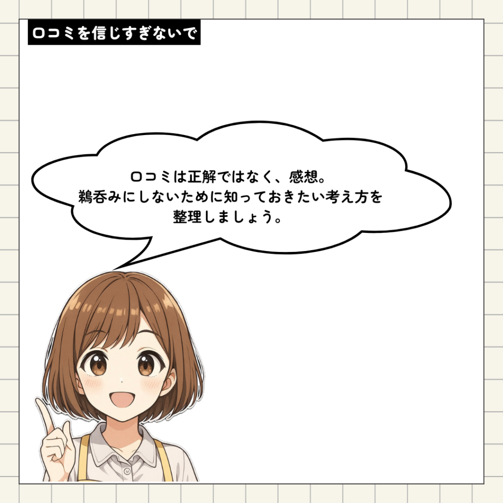 まずは、口コミを見るときにぜひ知っておいてほしい前提からお話しますね。